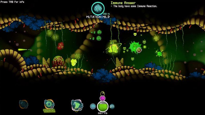 A 2D action roguelite set inside a living body. Choose your gunform, wield organ-defined Overdrives, and manipulate resonance as a nano-AI diving through shifting organs filled with mutating cells, evolving threats, and cryptic bio-lore.